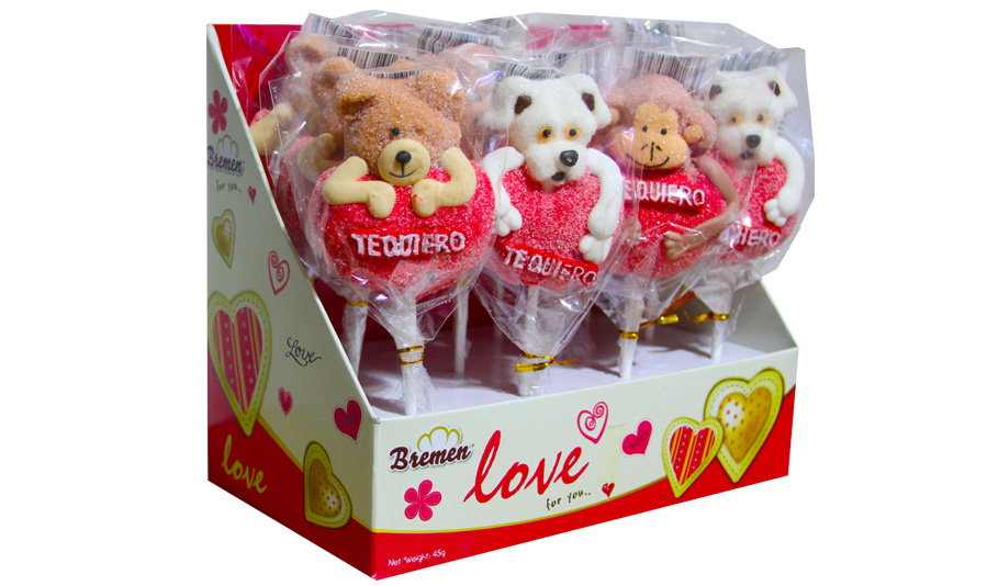 Corazón Marshmallows Pops 45 grs - Código de producto: MSHC-006 - 12 unidades por display - La caja contiene 6 display de 12 unidades cada uno